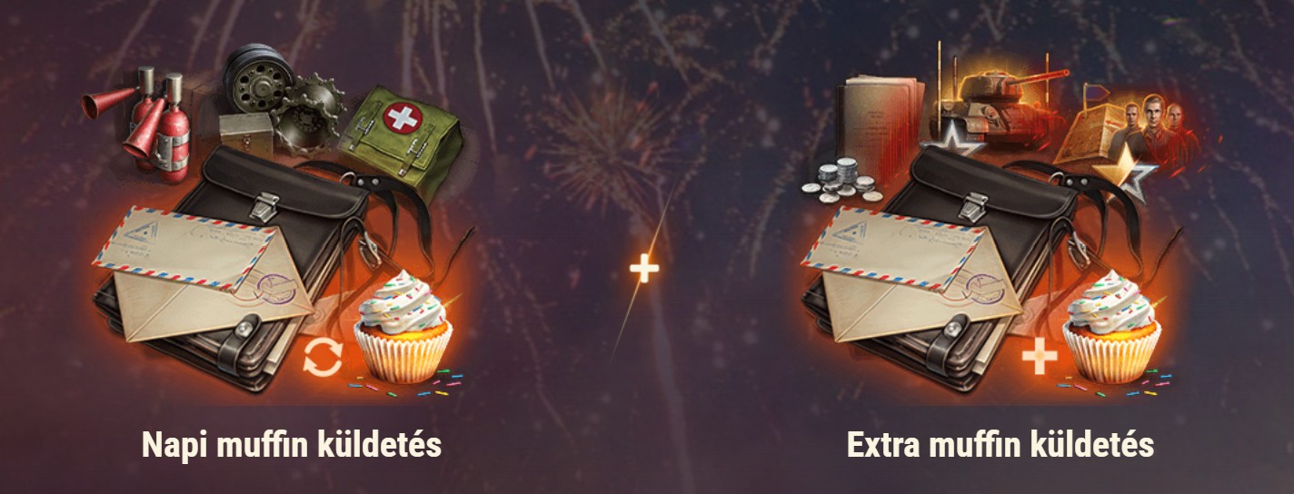 Ünnepeld a születésnapot rengeteg jutalommal! Teljesítsd a napi muffin küldetést és a vasárnapi extra muffin küldetést, gyűjts muffin tokeneket, szerezz küldetésjutalmakat, és oldj fel további ajándékokat automatikusan, ahogy egyre több tokent gyűjtesz — mindössze ötre van szükség az esemény összes jutalmának feloldásához, beleértve a VII T26E3 Eagle 7 járművet is.
