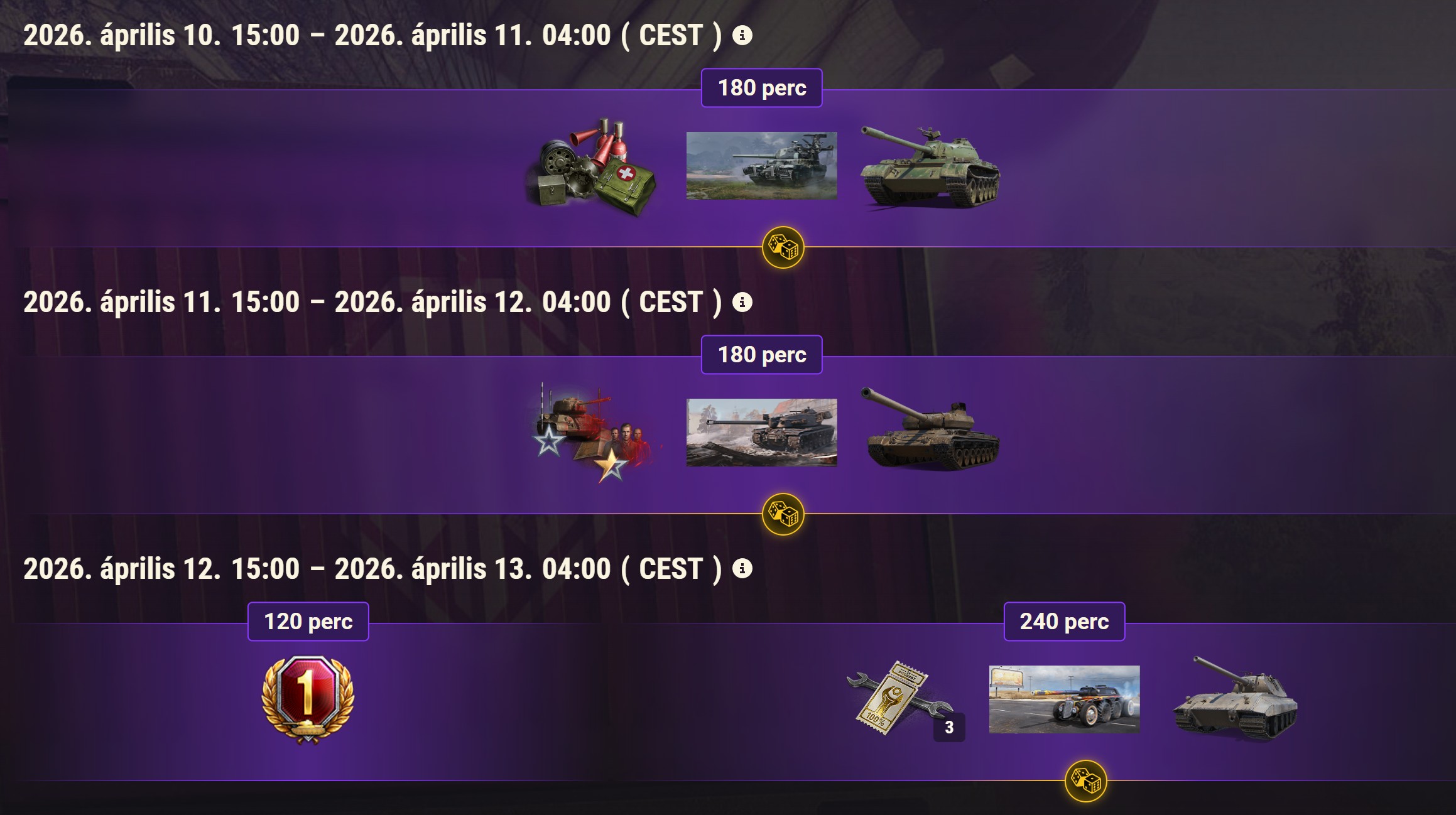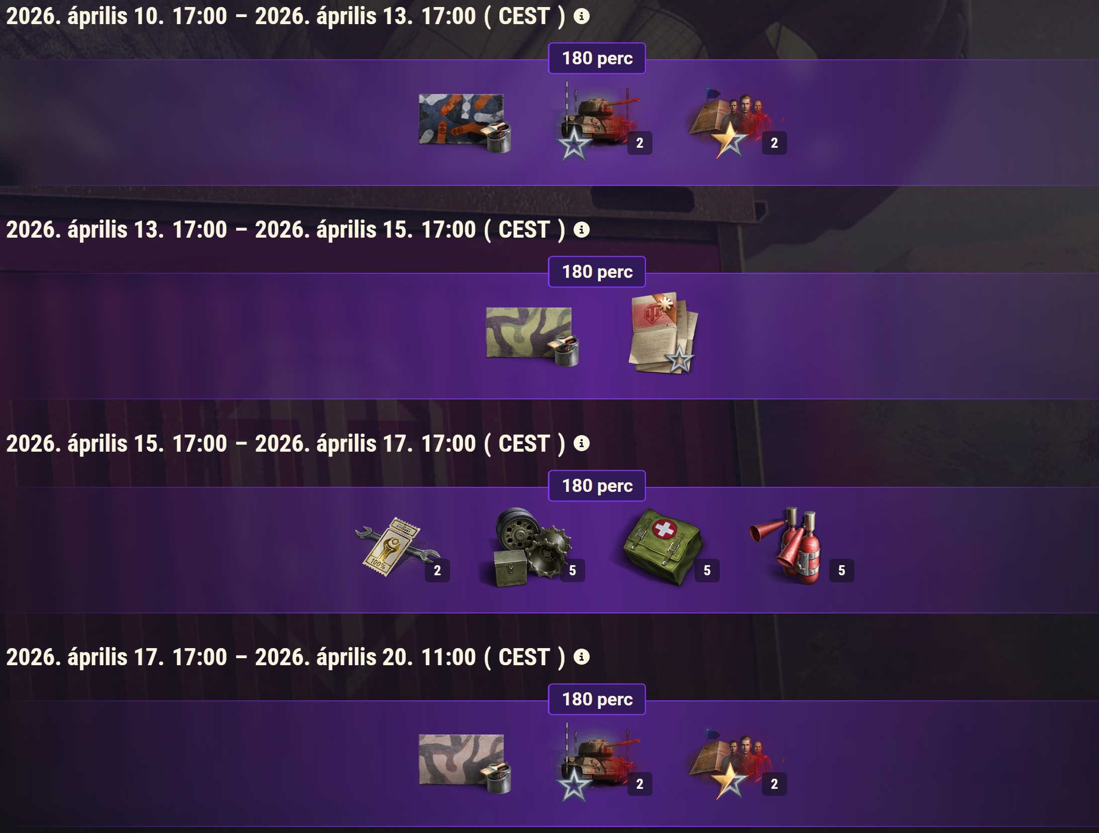 Ha legalább 60 napja nem csatáztál, jelentkezz be 2026. május 7.. 11:00 óráig (CEST), hogy megszerezd a különleges visszatérési bónuszcsomagot, amely segít újra belerázódni az akcióba!